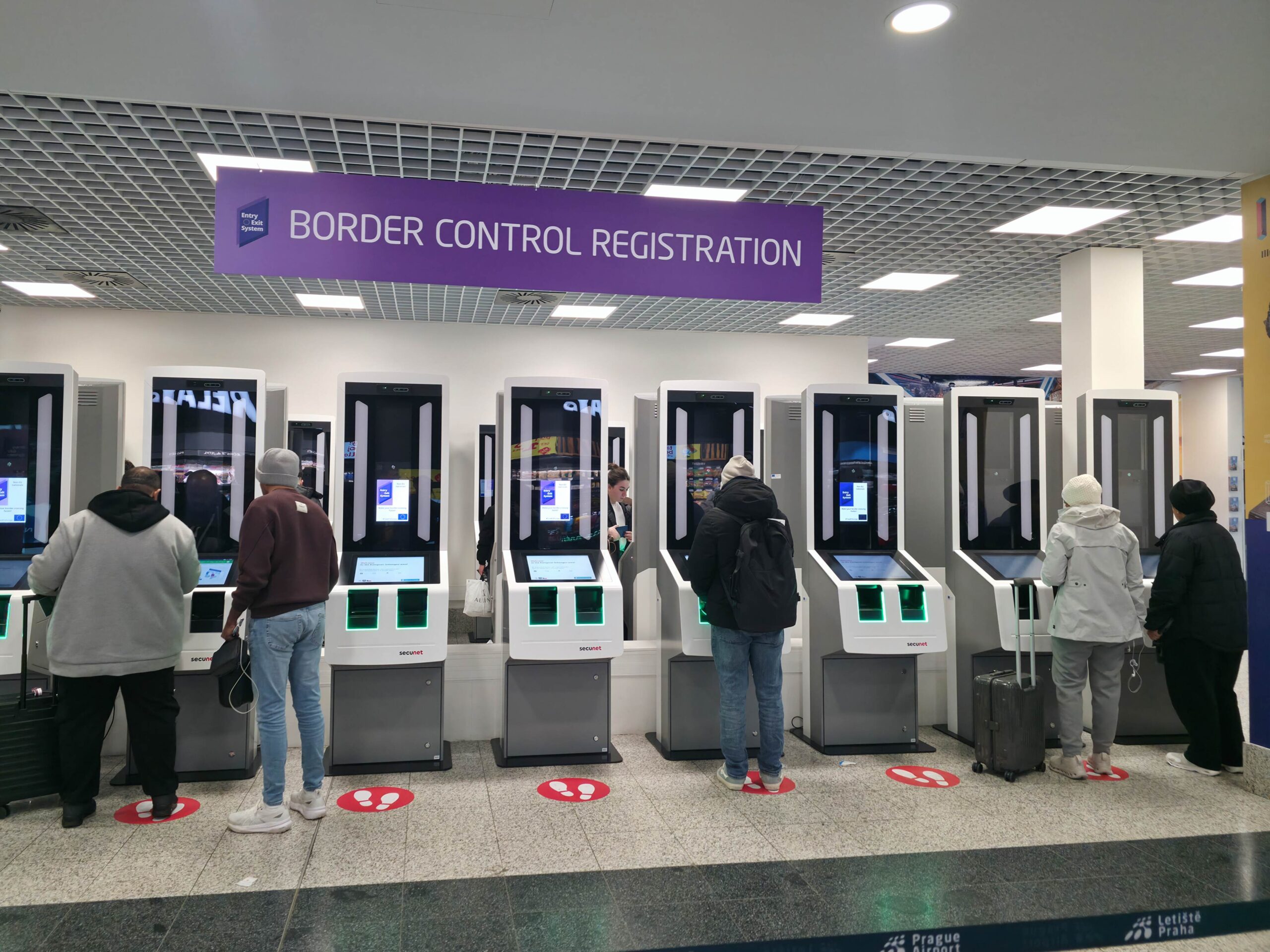 If you’re arriving in Prague from outside the EU/Schengen and you’re subject to EES, Prague Airport asks you to pre-register at an EES self-service kiosk in the arrivals area before you join the border control queue.